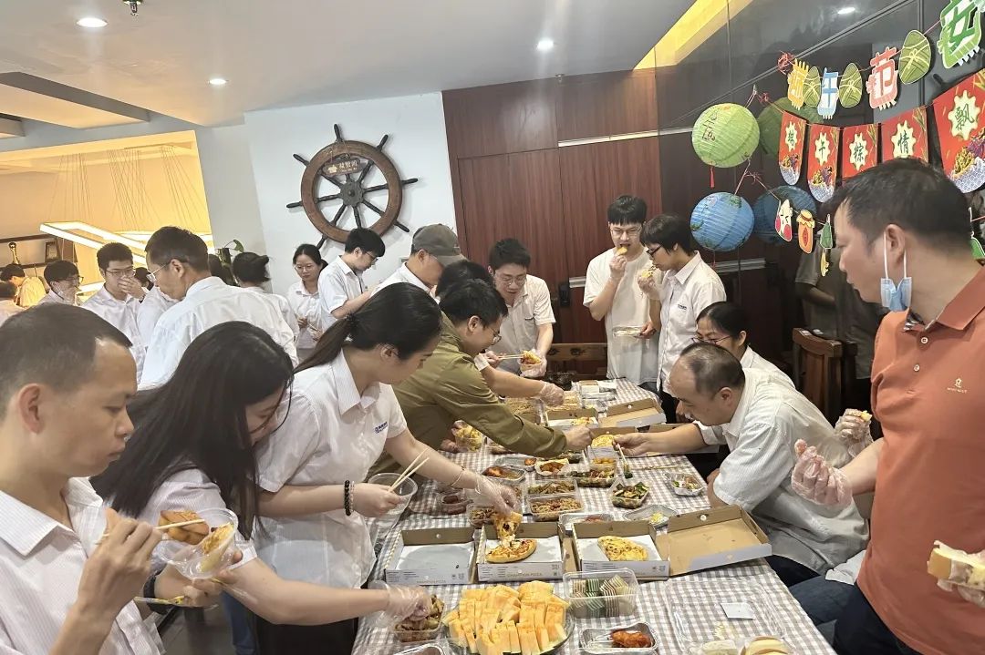天安辦公室變身美食的天堂,一場熱鬧非凡的大食會開啟!這里有軟糯香甜的粽子,還有豐富的主食、新鮮的水果、香脆酥嫩的雞翅、美味的糖水等,每一樣都讓人垂涎欲滴。