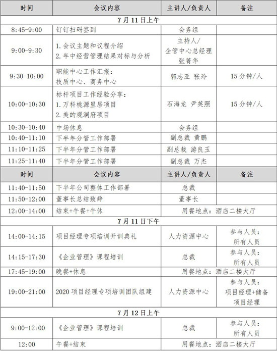 二、【主題】:2020年中經營工作總結會、項目經理專項培訓