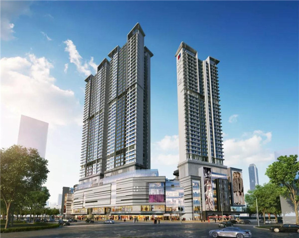 華發(fā)廣場項目位于中山市悅來南路與中山二路交匯處西南側,由地下室、商業(yè)裙樓及4棟住宅組成,總占地面積為2,7300㎡,總建筑面積為19,4738.77㎡,地下為4,9381.97㎡,地上為14,5356.8㎡。塔樓建筑高度為120m、150m,建筑層數地下3層,地上34、36、42層(其中1-7層為商業(yè)裙樓,8層為轉換層),框剪結構。
