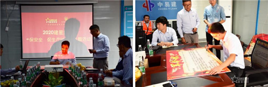 隨后,集團(tuán)副總裁黃鵬與各項目經(jīng)理及相關(guān)安全負(fù)責(zé)人簽訂軍令狀。明確安全責(zé)任和使命,確保公司年度安全管理目標(biāo)的實現(xiàn)。