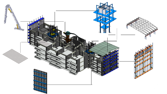 一種全新施工體系,由核心筒自升爬模組成的大模板體系、成品鋼筋網(wǎng)片機(jī)械安裝體系、自動(dòng)伸縮遮陽雨棚系統(tǒng)共同組成的智能建造體系。該體系應(yīng)用于施工現(xiàn)場(chǎng),安裝于樓層作業(yè)面。優(yōu)勢(shì)是提高勞動(dòng)效率、降低成本、加快施工周期,提高施工質(zhì)量,同時(shí)施工安全性得到保障。通過各裝置之間聯(lián)動(dòng)工作,使得工地?cái)?shù)字化、在線化、智能化,項(xiàng)目實(shí)施與企業(yè)管理達(dá)到良好的組合效果。