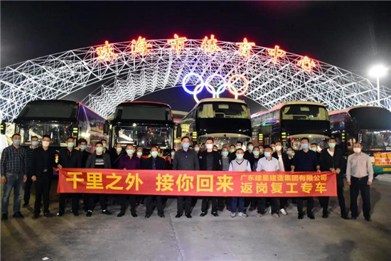 2月26日,建星集團(tuán)正式開通建筑工人“點(diǎn)對(duì)點(diǎn)”一站式返崗復(fù)工專車服務(wù),已順利完成湖南專線并接回返珠工人近百名。2月29日晚上20:30,第二批四川、重慶專線共9輛車也順利抵珠,歷時(shí)27個(gè)小時(shí),跨越1800公里,接回約200名工人,送抵各項(xiàng)目部。