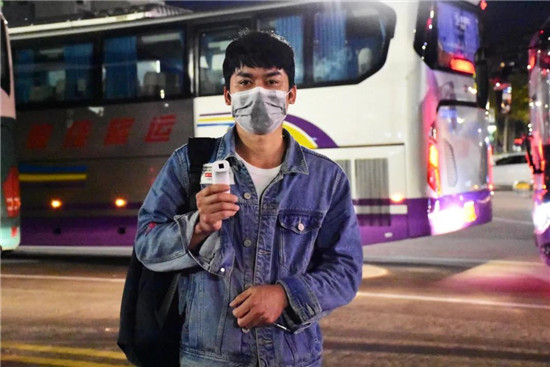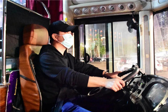 “剛開始接到接車任務(wù),其實(shí)家人還是蠻擔(dān)心我的。不過專車的防疫措施做得很好,做過全面消毒,原本可以坐50多人的大巴,因?yàn)橐3忠欢ň嚯x,按規(guī)定一排只能坐一個(gè)人,所以只坐了一半的人數(shù)。雖然不遠(yuǎn)千里一趟接人數(shù)不多,但為了大家安全,我們覺得也值得!這一趟來回3600公里,整整奔波了3天3夜,今晚終于可以好好睡覺了,不容易,哈哈……”